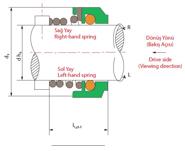 Döner Yüzey (SUS304/SiC/Carbon/TC) Sabit Eleman (Carbon/SiC/TC) O-Ring (NBR/EPDM/VITON/PTFE) Retainer (SUS304/SUS316) Yay (SUS304/SUS316)