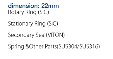 Rotary Ring (SiC) Stationary Ring (SiC) Secondary Seal(VITON) Spring &Other Parts(SUS304/SUS316)