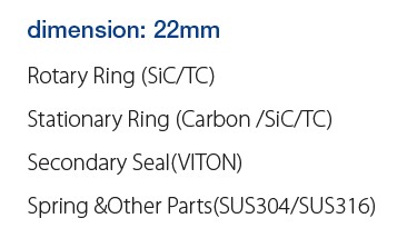 Rotary Ring (SiC/TC) Stationary Ring (Carbon /SiC/TC) Secondary Seal(VITON) Spring &Other Parts(SUS304/SUS316)