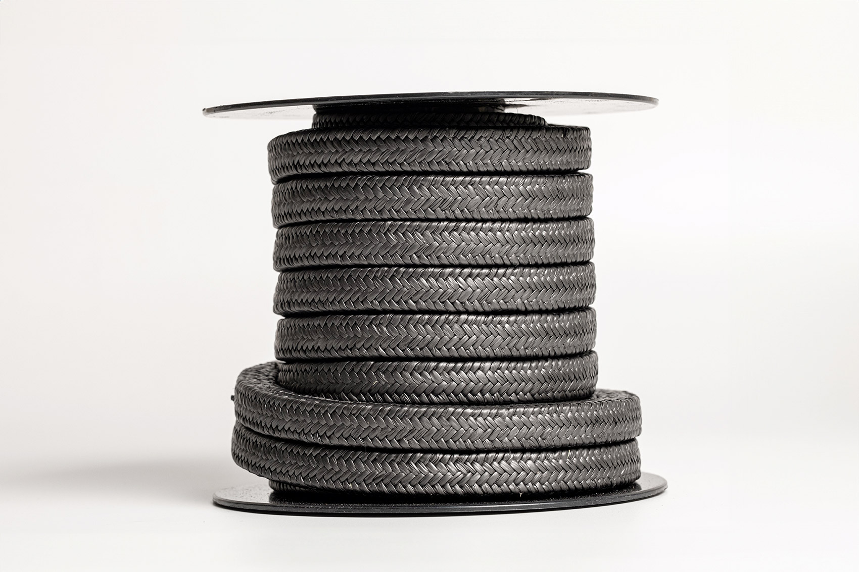 Using a special yarn manufactured starting from a PTFE/graphite leaf folded around continuous aramid fibers, then braided with HCD® system, the new packings achieved can now be applied on toughest working conditions thanks to the high tensile strenght of the aramidic fibers and the heat dissipation capacity of the carbon yarn surrounded by the PTFE/graphite.